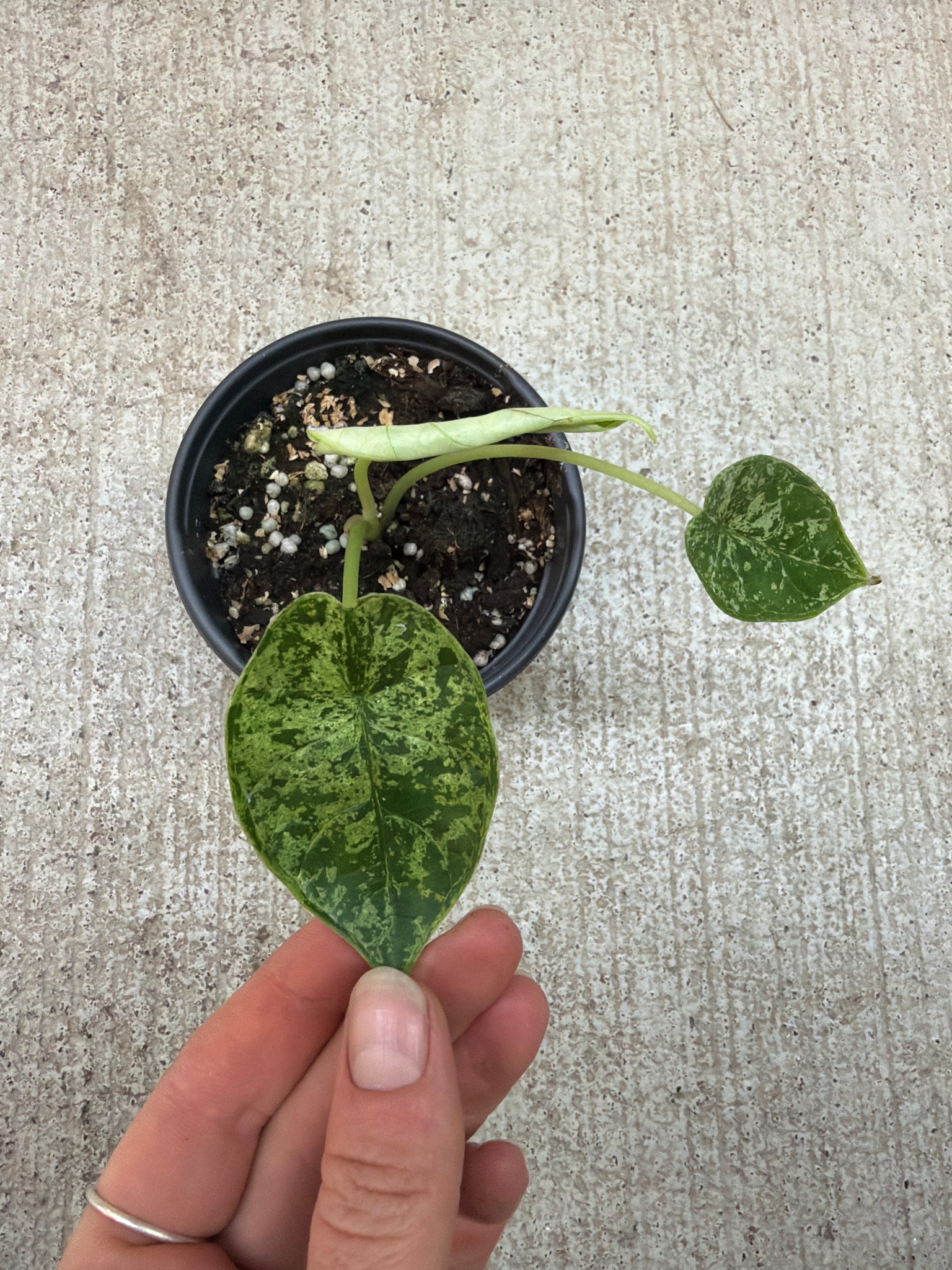 Experience the exotic beauty of Alocasia 'Dragon Scale' Variegata Mint! With its stunning variegated foliage and compact size, this plant adds a touch of elegance to any space. Perfect for indoor or outdoor use, the Alocasia baginda is a must-have for any plant lover looking to add a unique touch to their collection.