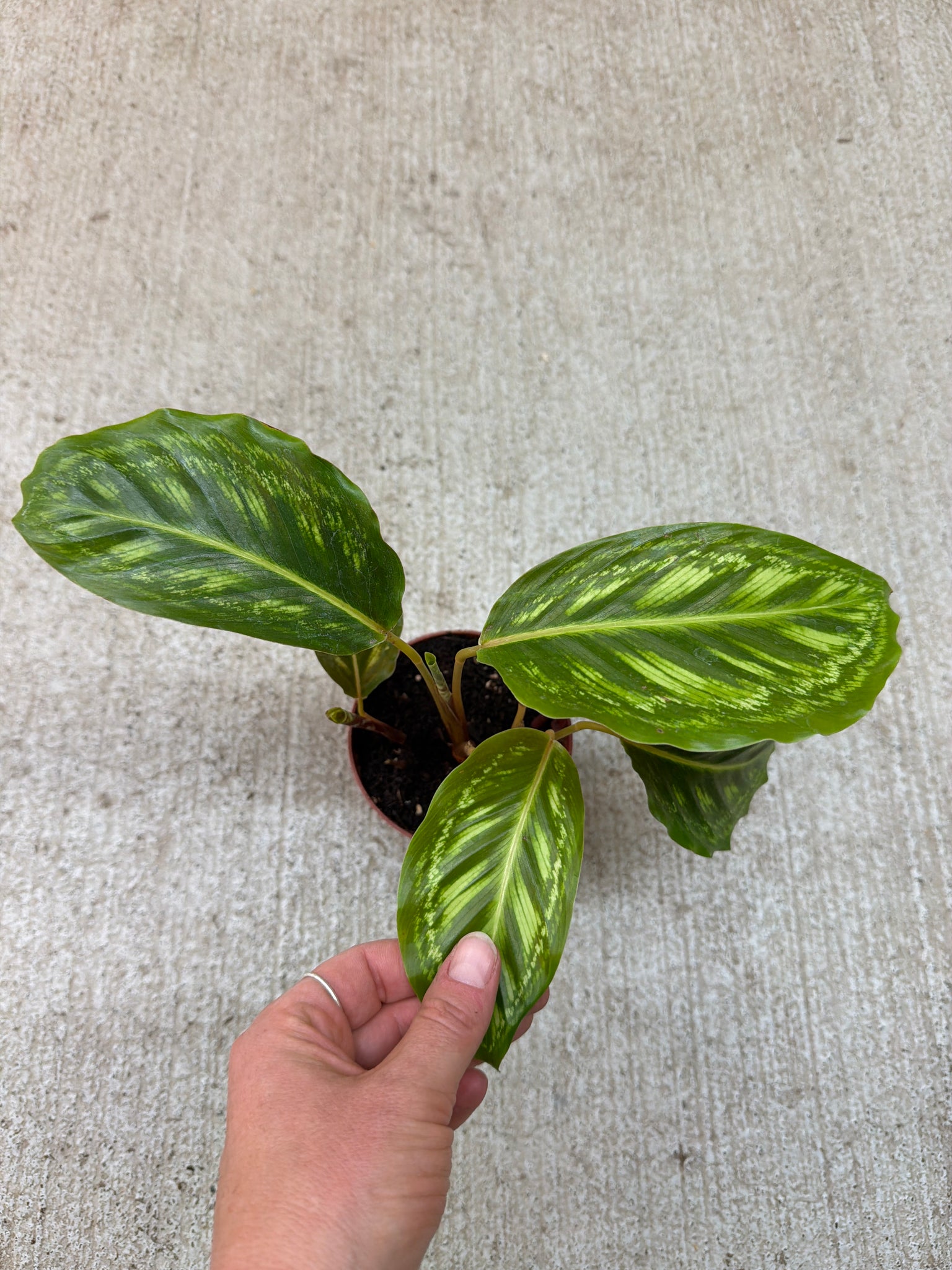 Introducing the Calathea Flamestar 4" - a beautiful addition to any plant collection. With its vibrant and unique foliage, this plant will add a pop of color to any space. Its low maintenance needs make it perfect for busy lifestyles. Bring nature indoors and brighten up your surroundings with the Calathea Flamestar 4".
