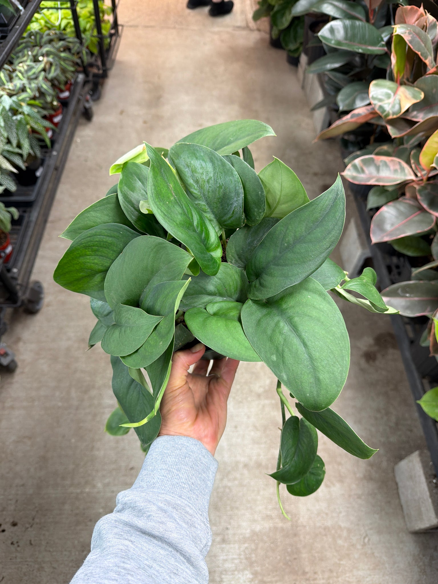 The Scindapsus Jade Satin 6" - Pothos is a variegated pothos plant with unique jade colored leaves. This low-maintenance plant is perfect for adding a touch of beauty to any space, and its air-purifying properties make it a beneficial addition to your home. Enjoy the benefits of a beautiful and healthy plant with the Scindapsus Jade Satin.