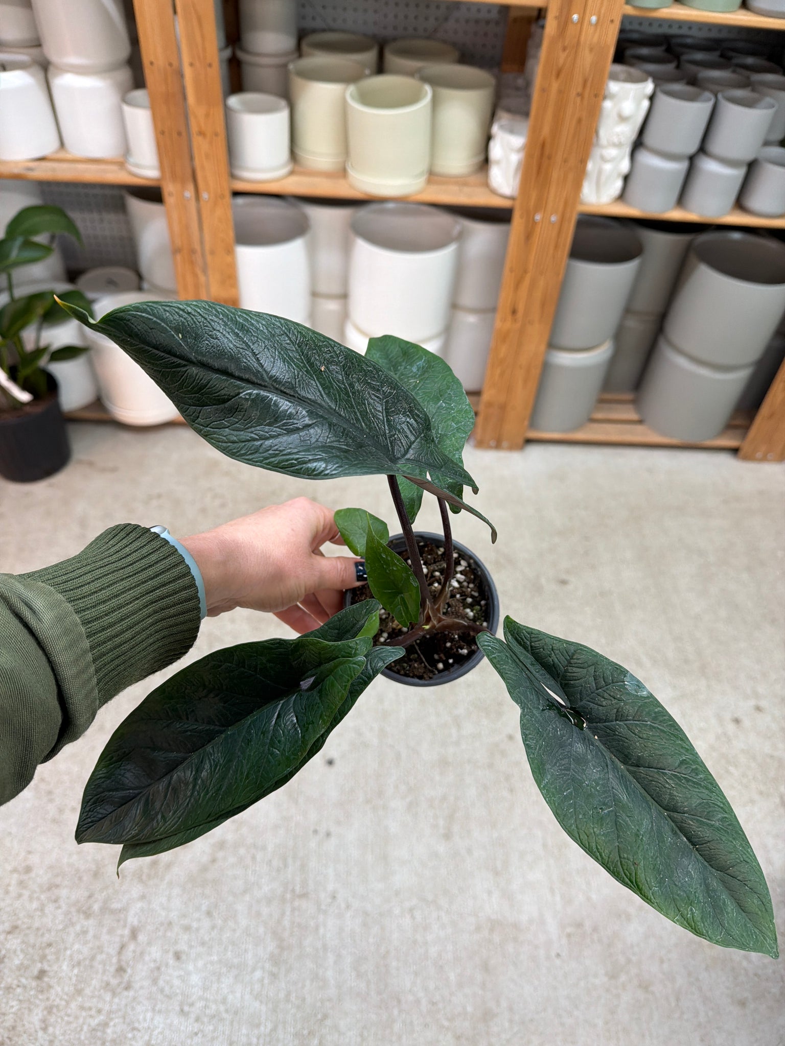 This Alocasia Scalprum is a 4" plant known for its unique scalloped edges and vibrant green leaves. It is a favorite among plant enthusiasts for its striking appearance and low maintenance care. With its exotic look and easy care instructions, this Alocasia Scalprum is a perfect addition to any indoor or outdoor space.