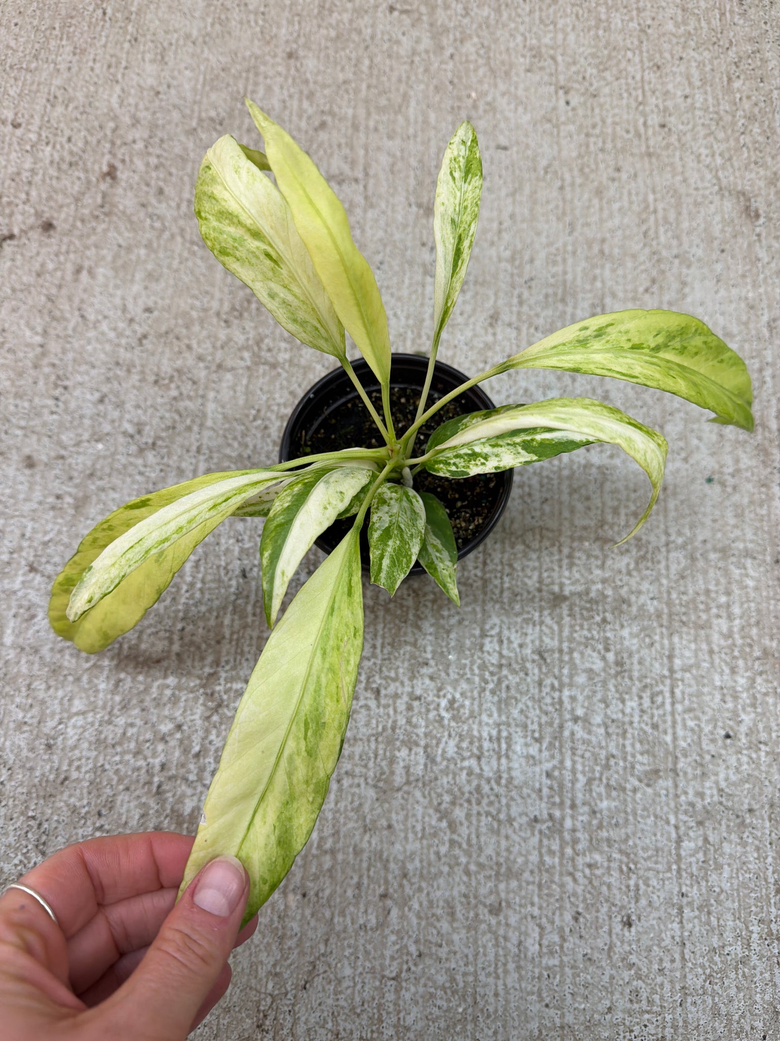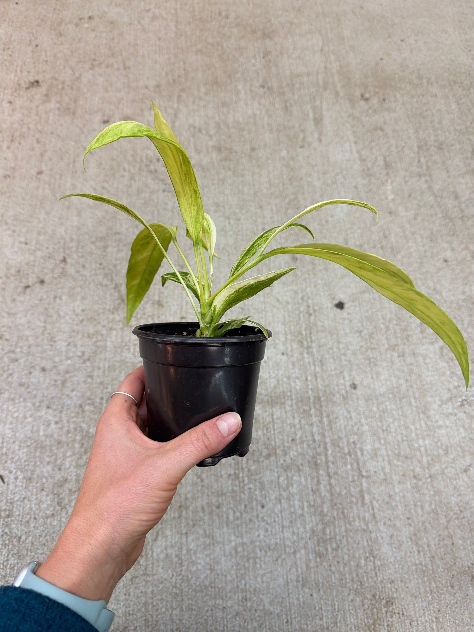 Get the best of both beauty and function with Anthurium vittarifolium variegated 4". Boasting long, narrow, and variegated foliage, this plant adds a touch of elegance to any space while also improving air quality. Elevate your space with this stunning and beneficial addition.