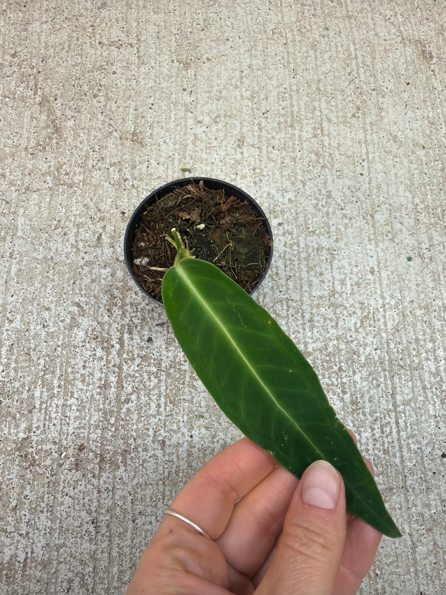 "Unleash your adventurous side with the Anthurium Warocqueanum Dark Form 3"! This rare variety boasts rich, dark foliage that adds a touch of drama to any space. Its compact size makes it perfect for small spaces, while its unique features make it a must-have for any plant enthusiast. Dare to add this beauty to your collection!"